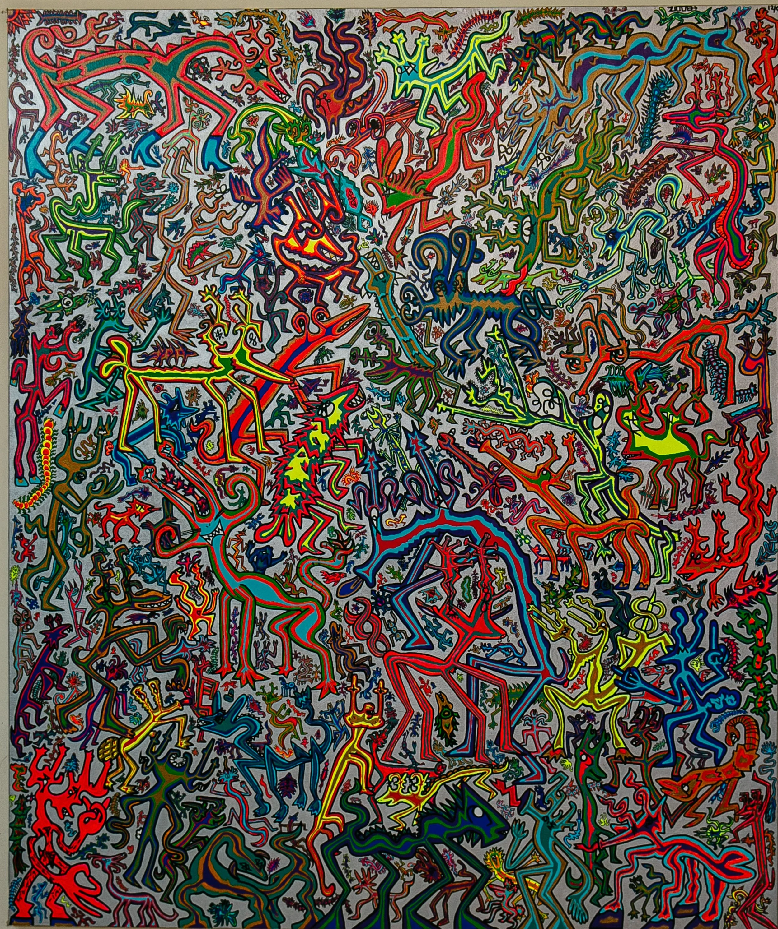 My work explores the relationship between the animal kingdom and mystical tribalism. With influences of Haring and indigenous Latin art, my characters are reminiscent of the demigods and mythical animal hybrids of lore in countless cultures of antiquity in a modern expression.